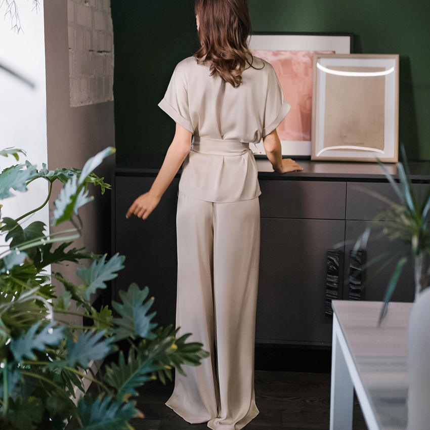 Style branché Service OEM & ODM Vêtements de nuit en soie satinée personnalisés Vêtements de détente de luxe 2 pièces Ensemble de vêtements de nuit pyjamas pour femmes