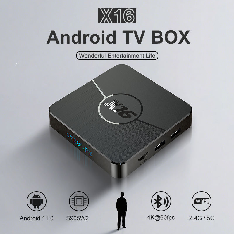 Nouvelle Box TV Android Intelligente X16 Super Box avec Lecteur Multimédia de Streaming Puissant, Amlogic S905W2, Wi-Fi 6, 8K, 4+32 Go, Accès Gratuit à Vie – Vsee Box