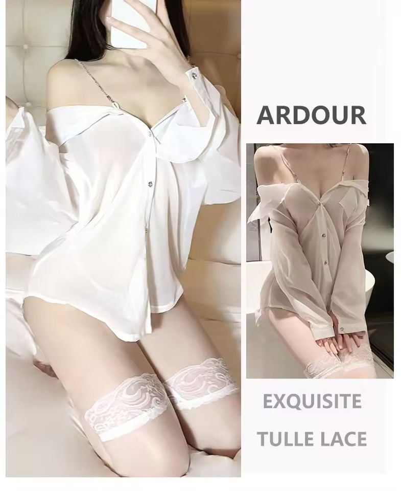 Tentation irrésistible : Lingerie féminine de luxe et séduisante, nuisette transparente en mousseline de soie style chemise à bretelles, taille unique, pyjama uniforme