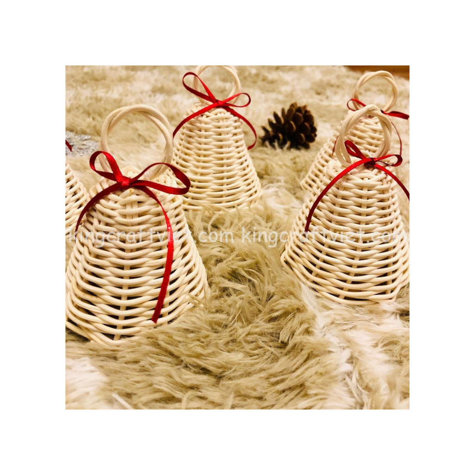 Tendance chaude Collection tissé à la main en rotin naturel cloche de noël ornement mignon arbres de noël suspendus décor couronne personnalisé 100 pièces quantité minimale de commande