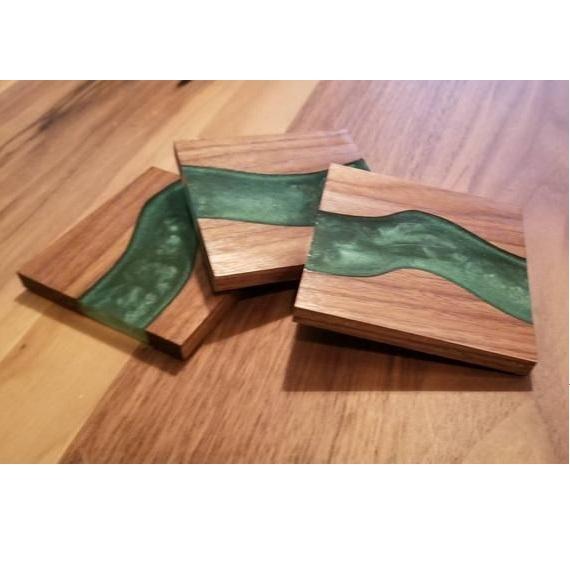 Tendance chaude cadeau de pendaison de crémaillère luxe pierre grise résine époxy et sous-verres en bois pour boissons cuisine de noël forme carrée tapis de Table