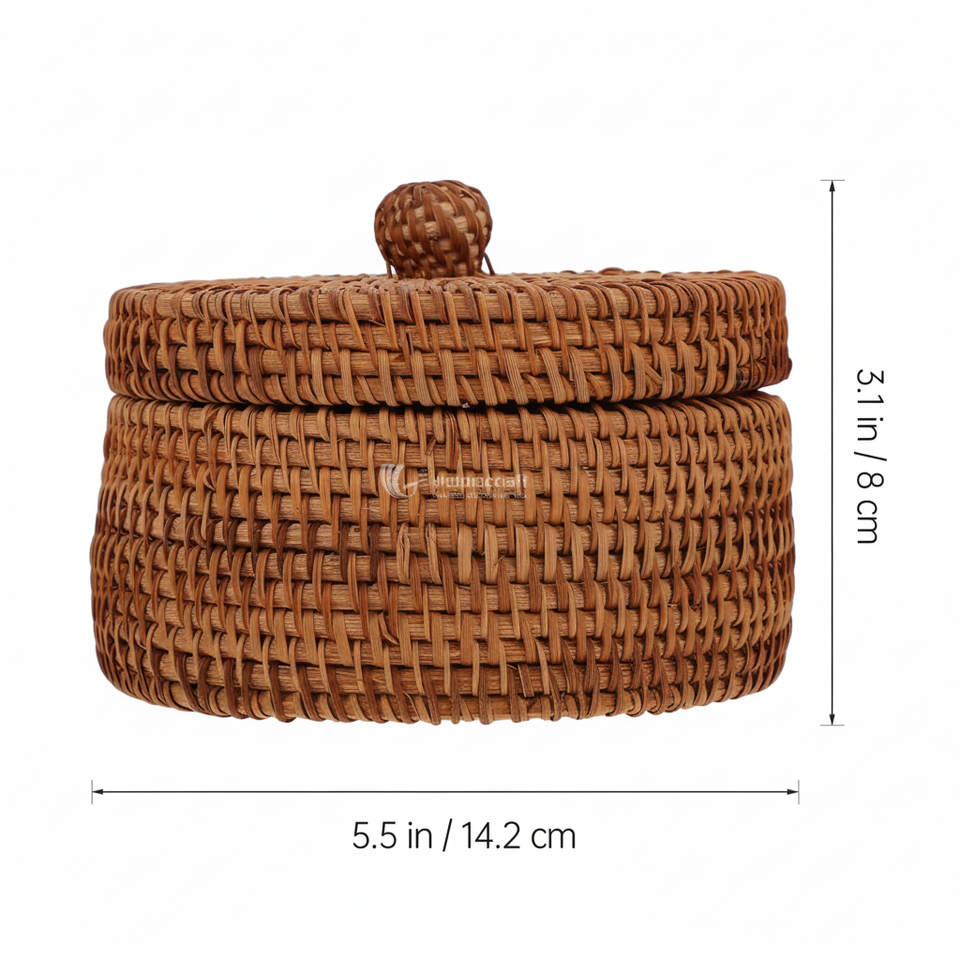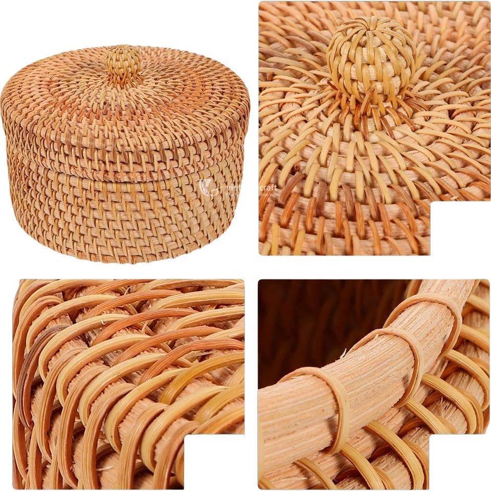 Boîte de rangement en rotin tendance avec couvercle, organisateur rond multifonctionnel naturel pour la décoration moderne de la maison