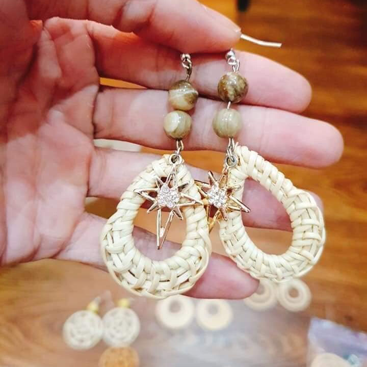 Boucles d'oreilles en rotin pour filles, modèle tendance, élégant, été 2020
