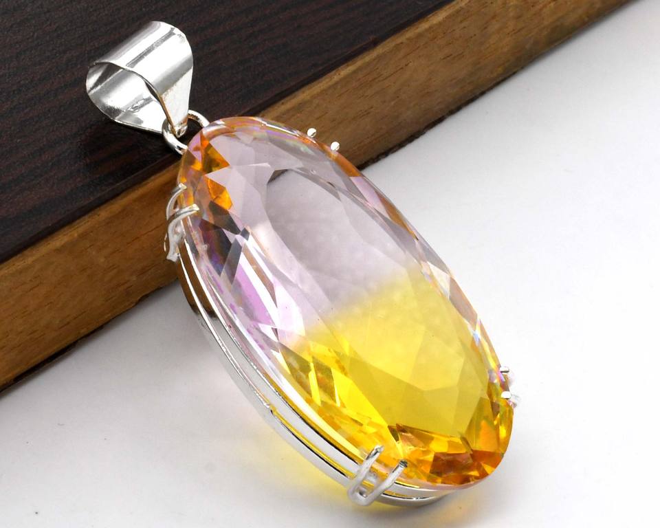 Tendance chaude bicolore Tourmaline pierre précieuse Vintage collier en laiton pendentif fin assorti pierre précieuse naturelle thème chrétien pour