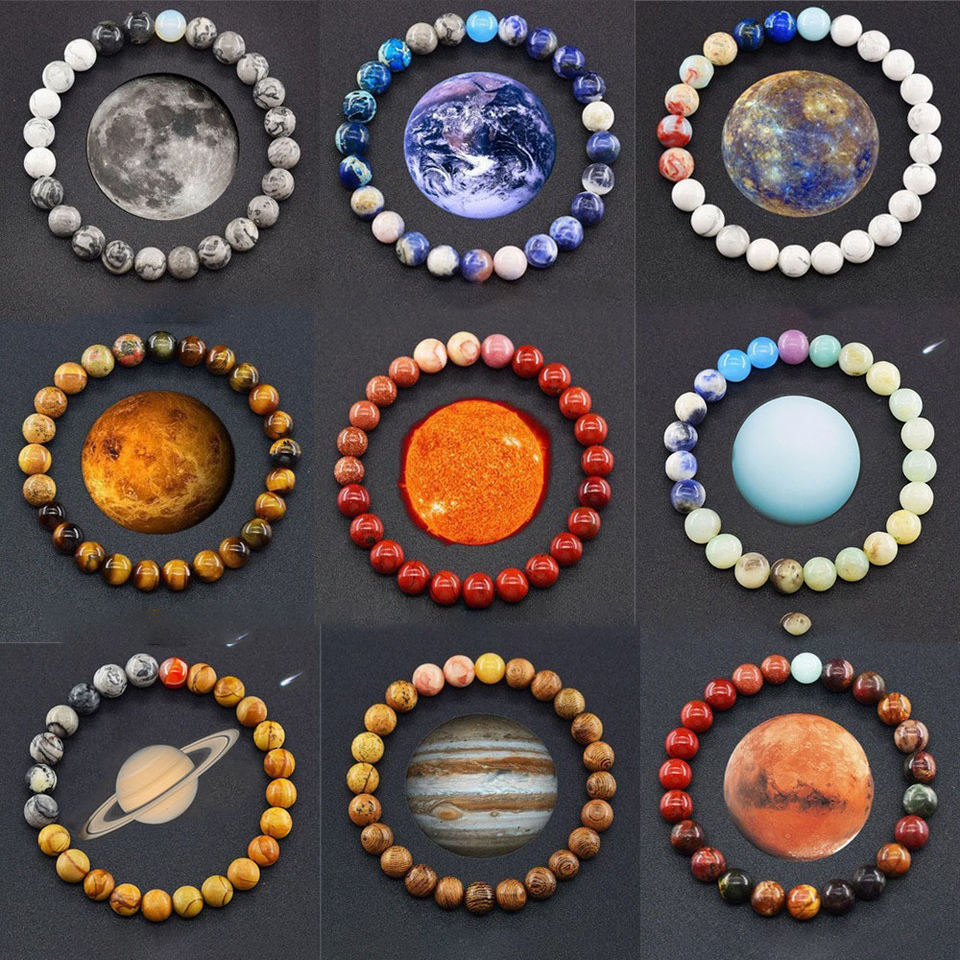 Bracelets perlés en pierre de couleur naturelle de huit planètes à la mode pour hommes et femmes cadeau d'anniversaire en forme d'étoile à la mode
