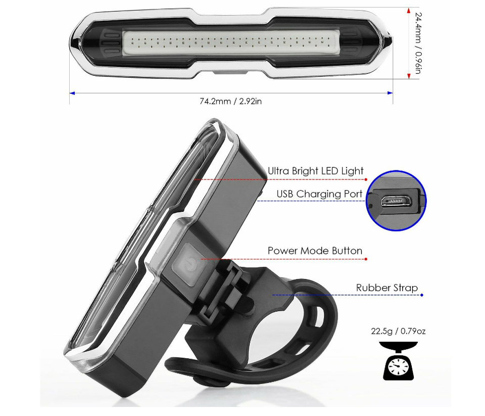Lampe de sécurité arrière à LED rechargeable par USB, lampe de signalisation arrière pour vélo de route VTT, étanche, clignotant