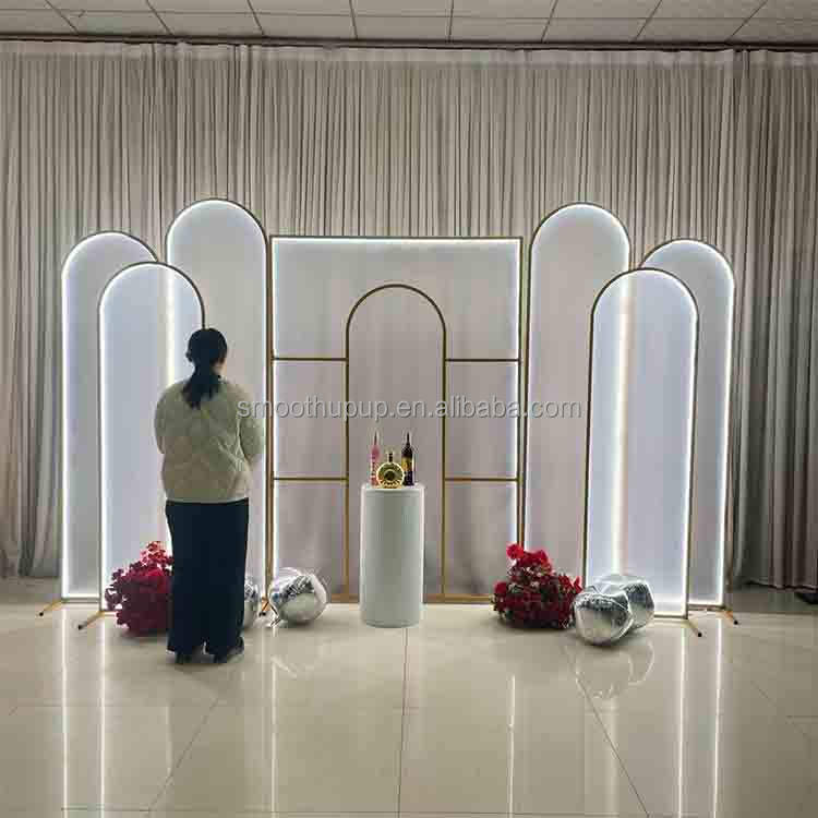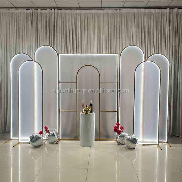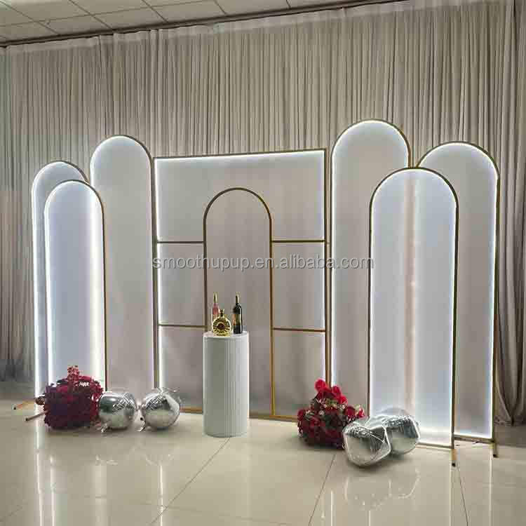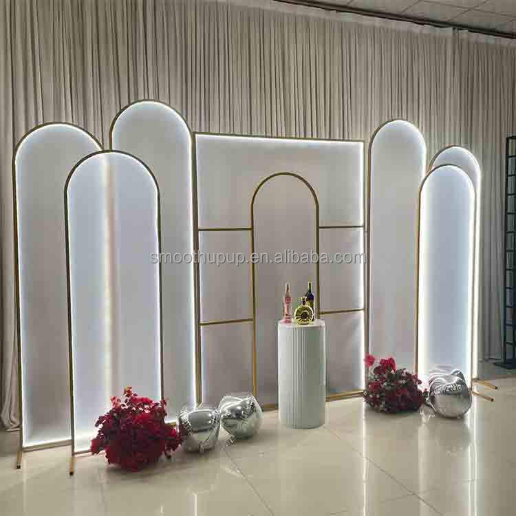 Accessoires de mariage tendance, écran en fer, mise en scène de mariage, arche en métal doré, zone d'accueil, cadre décoratif de fond
