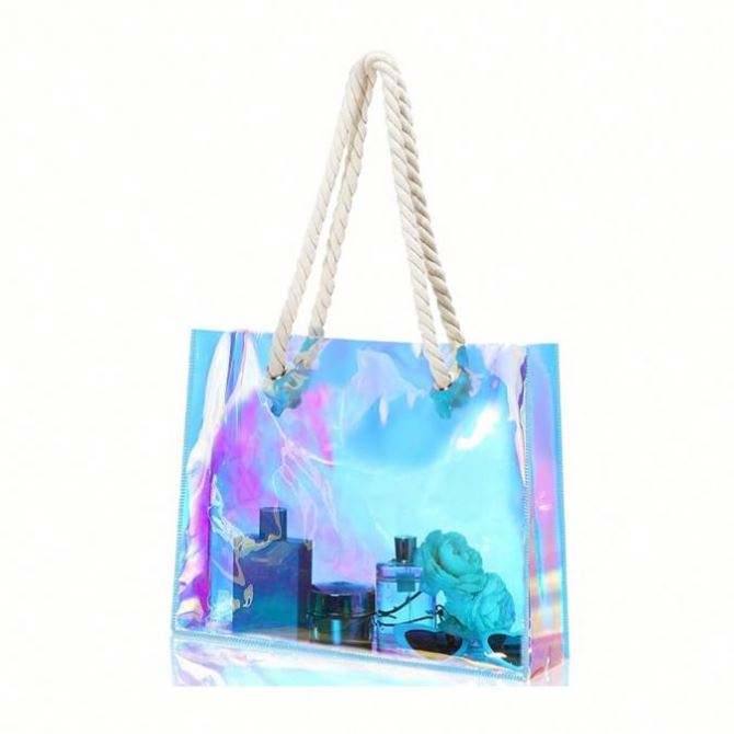 Nom du produit:Sac de courses en plastique brillant PVC Laser Transparent Holographique