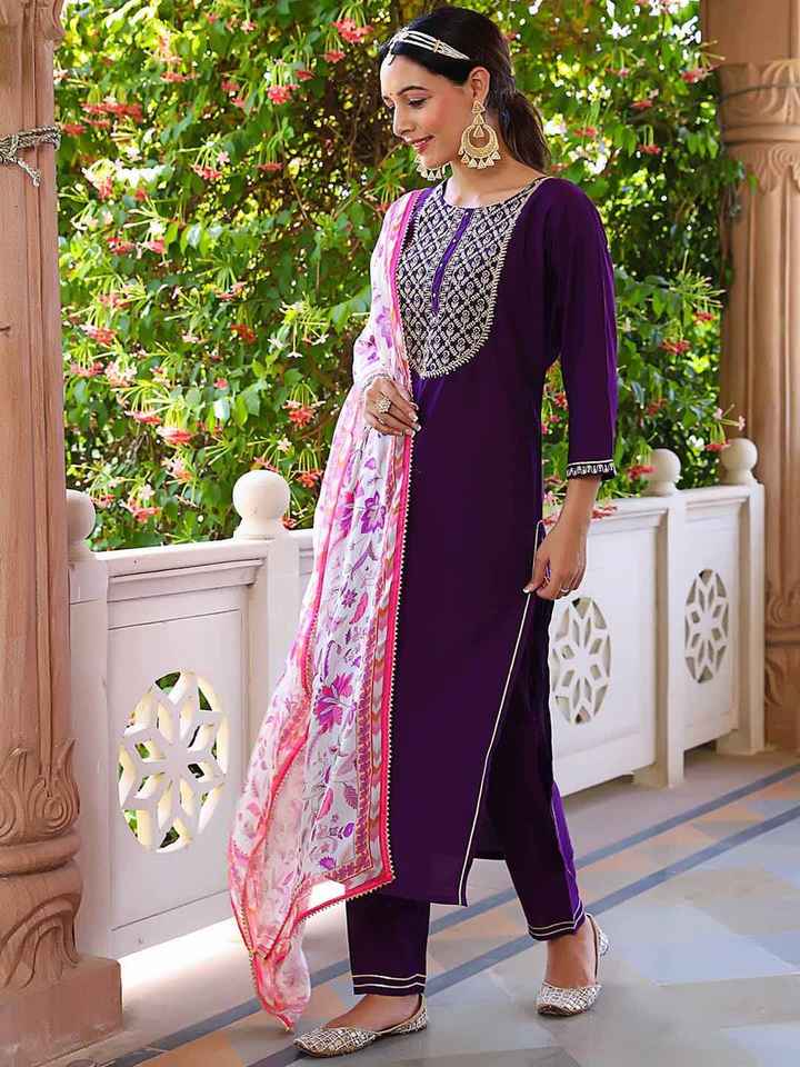 Ensemble de pantalons Kurta chauds et récents en tissu rayonne à manches longues pour femmes pour une occasion décontractée et spéciale par exportation en Inde