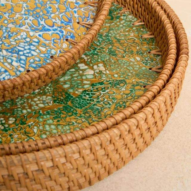Design chaud coquille d'oeuf en rotin rond plateau de service variété de taille pour table café et ustensiles de cuisine en gros de haute qualité du Vietnam