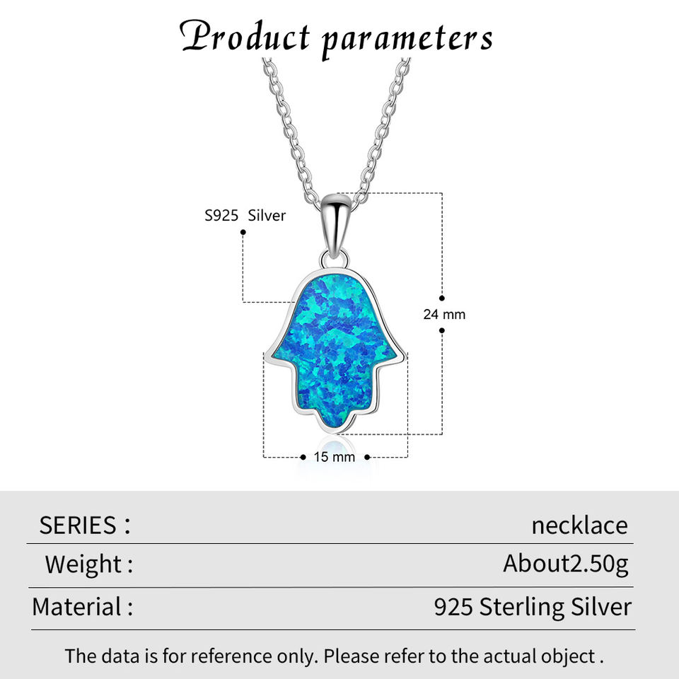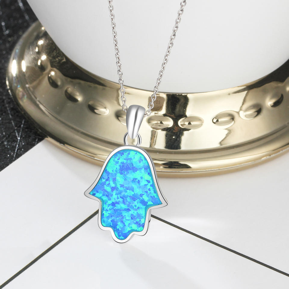 Hot sale Palm Pendant Clavicle Chain 925 Sterling Silver Blue Opal Hand Necklace for Women Daily Wear Jewelry Factory wholesale