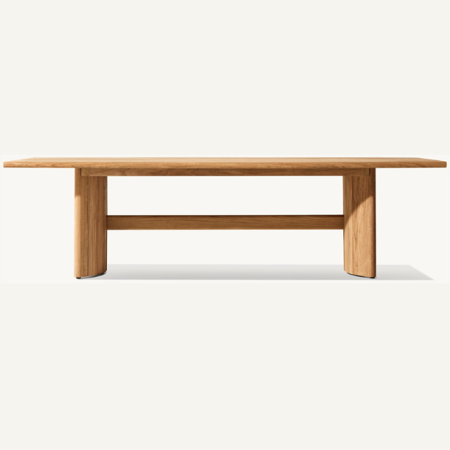 Table rectangulaire en promotion, style moderne et épuré, idéale pour l'extérieur, avec pieds robustes et durables.