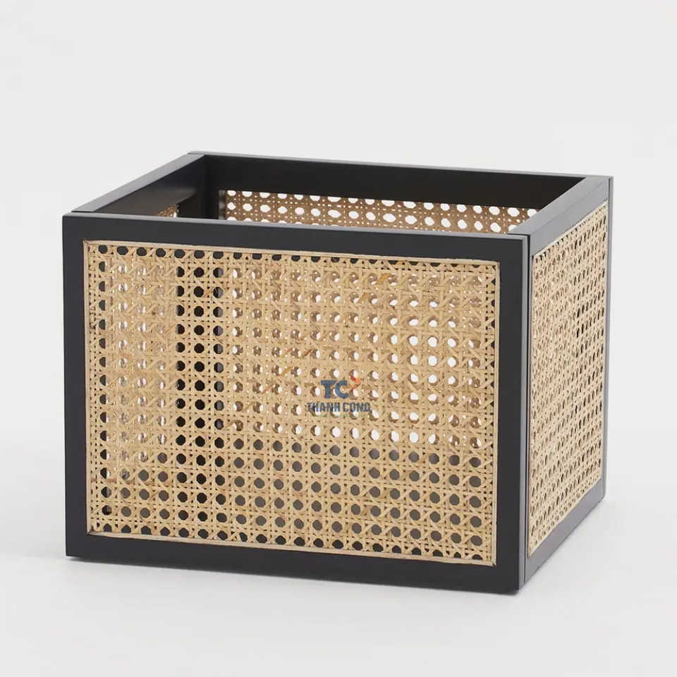 Bois d'acacia naturel un panier de rangement de paniers de canne en rotin