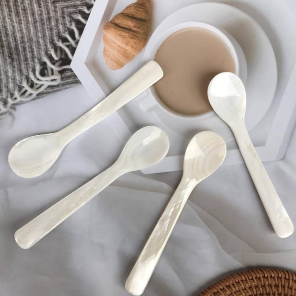 Hot sales custom designs mother of pearl spoon cheap price MOP inlay capiz seashell spoons
