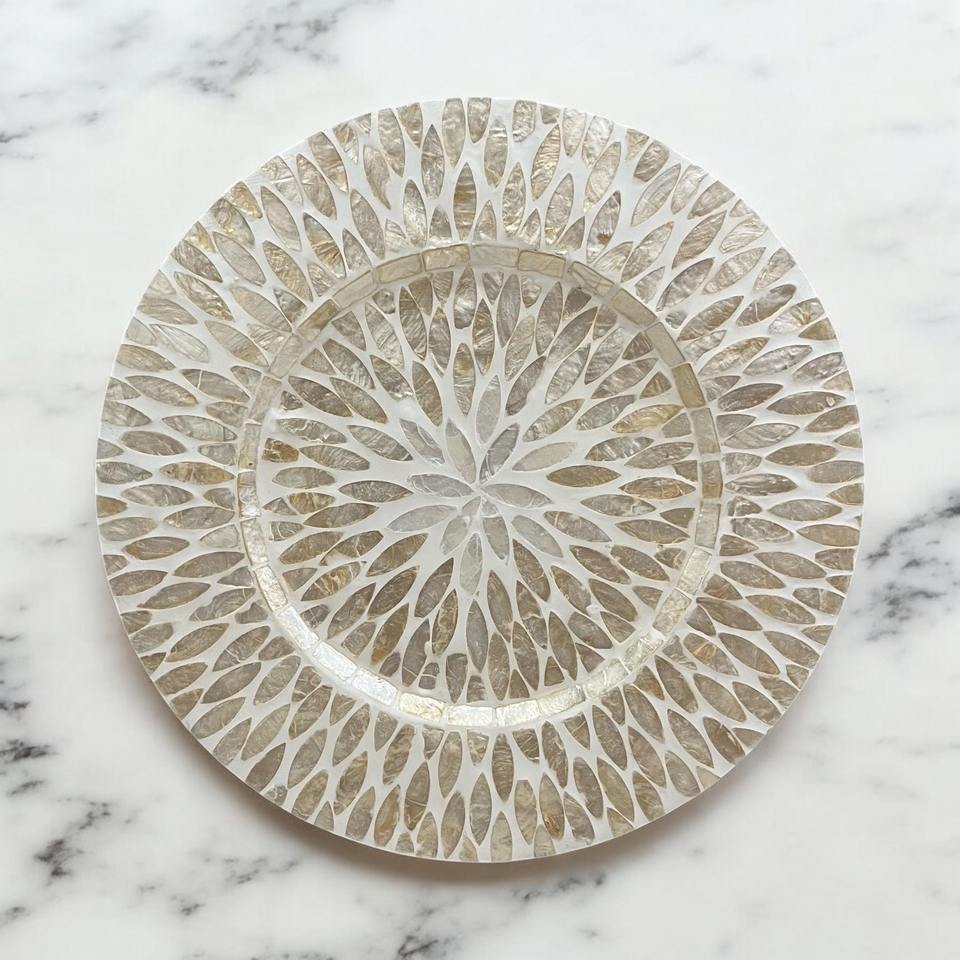 Hot sales mother of pearl charger plate low price MOP placemats for retailers shell placemat