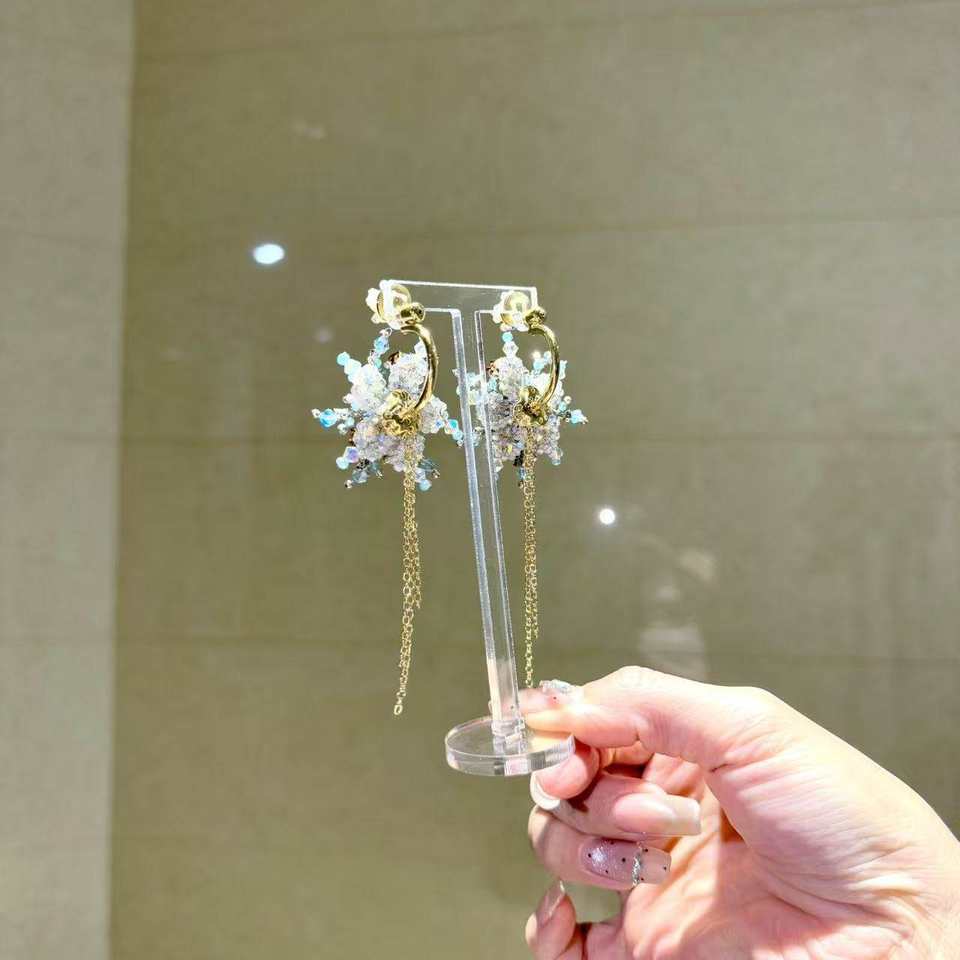 Boucles d'oreilles minimalistes modernes en imitation perle de la série flocon de neige, vente chaude, design 11 cm, tempérament, sens avancé, usage quotidien