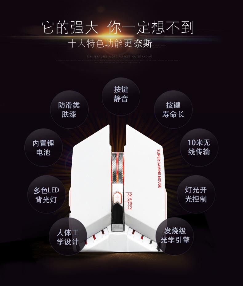 Vente chaude souris FV-W505 souris de jeu sans fil rechargeable mécanique haut de gamme