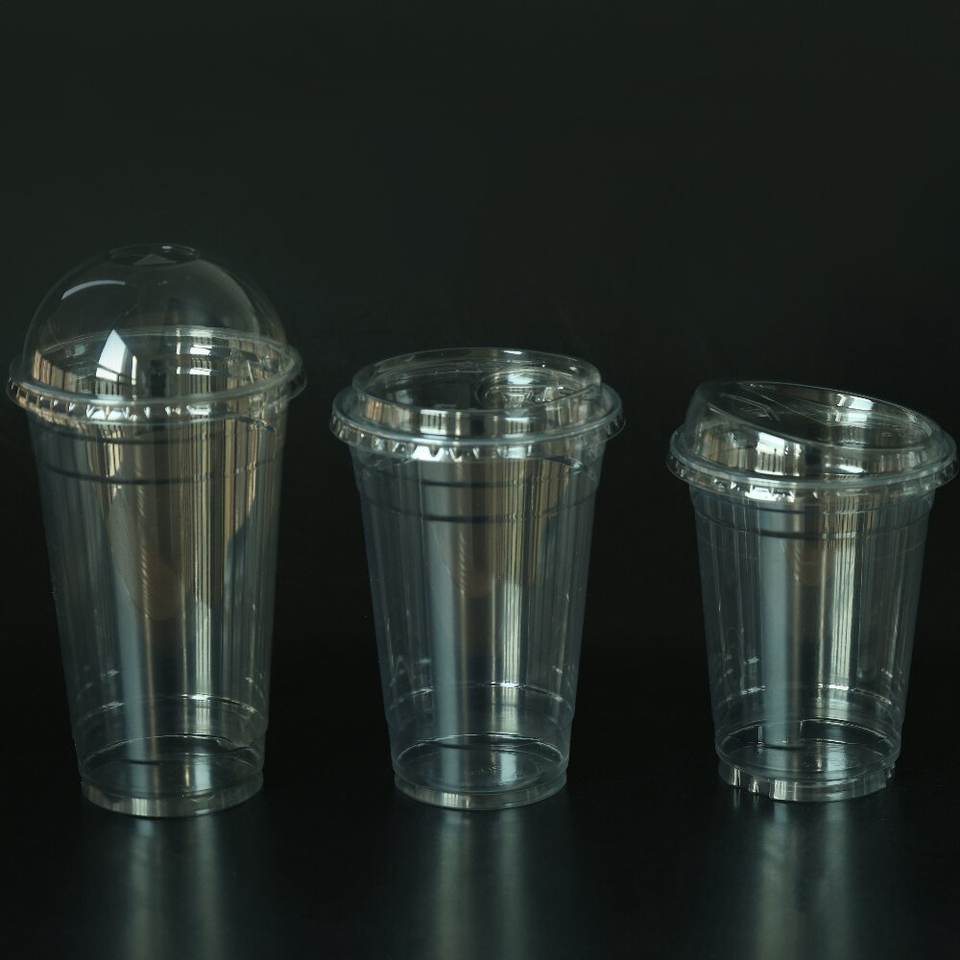 Gobelets à boire en plastique personnalisés à haute transparence, très vendus, 18 oz, gobelets à dessert en PET avec couvercles, gobelet à café pour cafés et boutiques