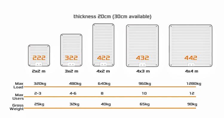 Taille:2x2x0.2m ou adapté aux besoins du client