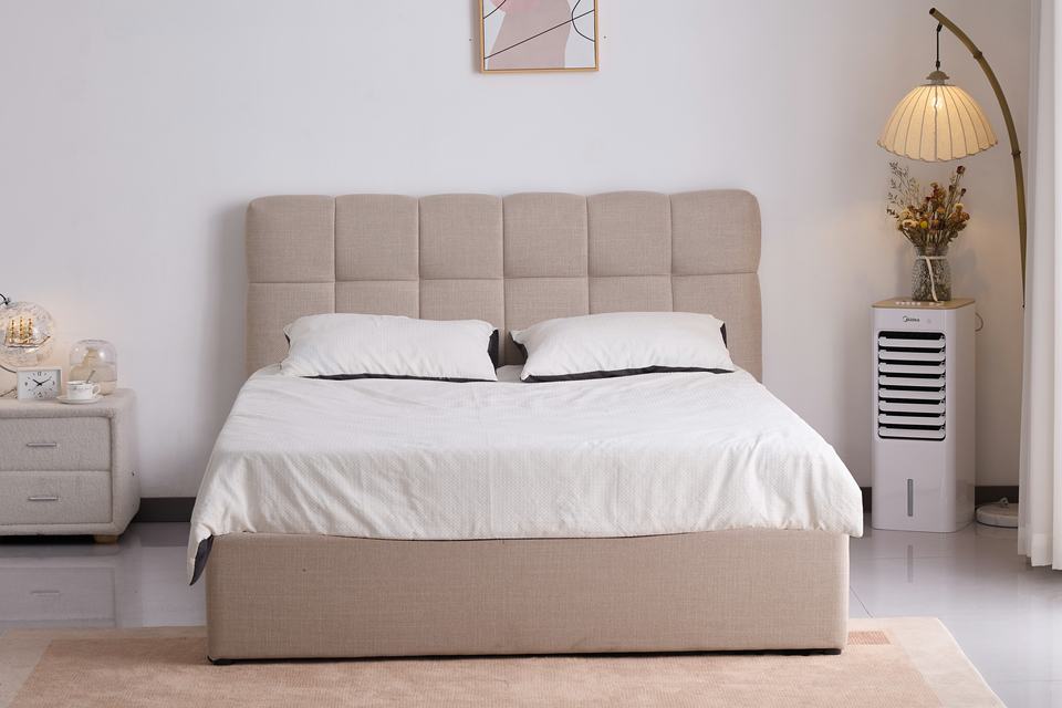 Cadre de Lit Coffre Double/Queen Rembourré au Design Moderne et Très Vendu avec Sommier Relevable à Vérins, Ensemble de Chambre à Coucher en Bois
