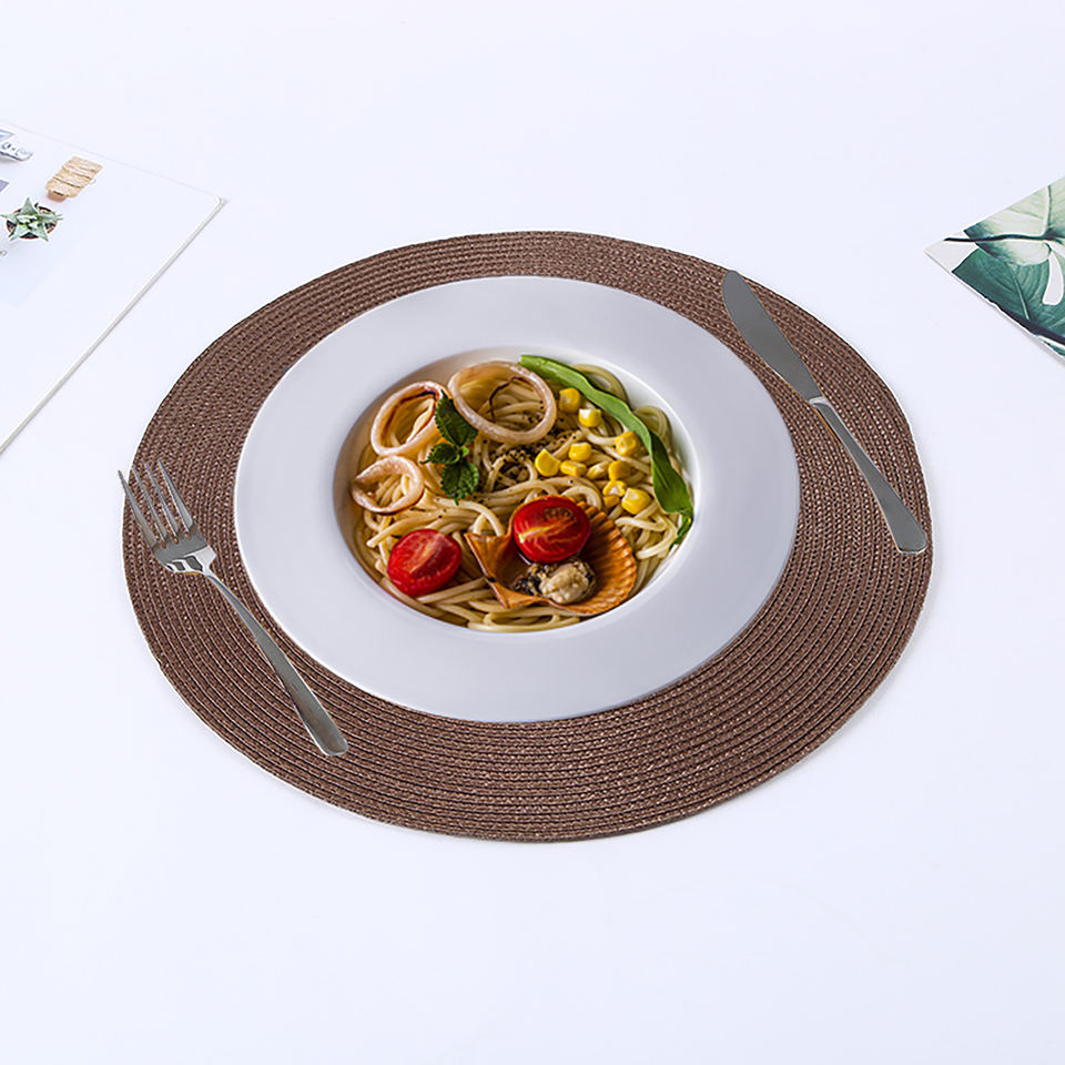 Nouveauté : Sets de table isolants en PP tressé à la main, couleur unie, pour la décoration et la protection des tables.