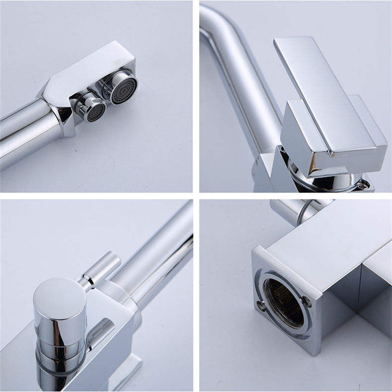 Robinet de cuisine à corps carré en céramique à vente chaude, à un seul trou, à double poignée, en chrome, sortie d'eau froide et chaude