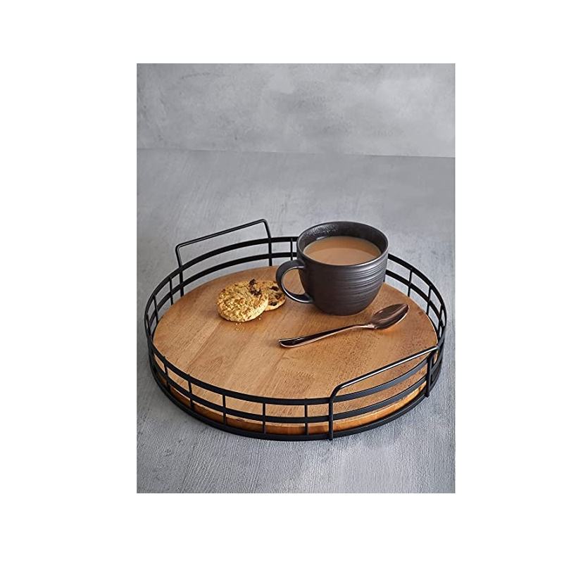 Plateau de nourriture d'hôtel de Offre Spéciale Conception ronde et rectangulaire en bois durable avec la poignée pour le bois en métal pour la restauration et les restaurants
