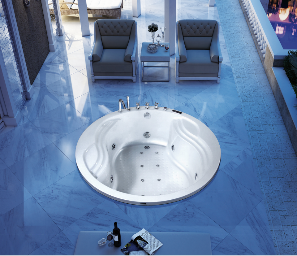 Baignoire à remous ronde en acrylique Hotaqi Modern Balboa Control pour quatre personnes, utilisation dans les hôtels et villas de luxe