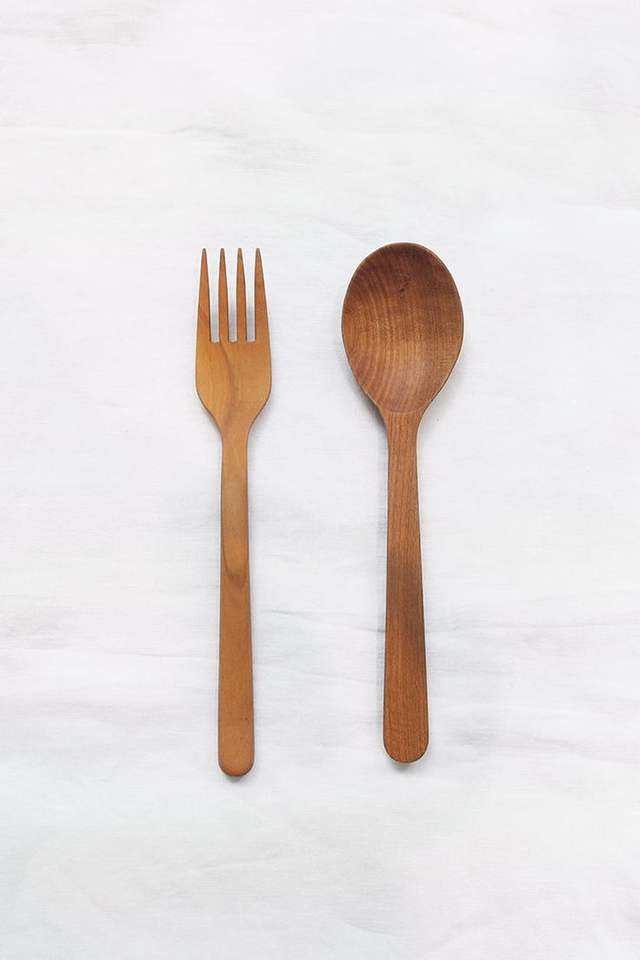 Ensemble de couverts et de vaisselle d'hôtel : Cuillère, fourchette, ustensiles à dessert, service à salade, finition miroir en bois, nouvelle arrivée, type de vaisselle d'hôtel