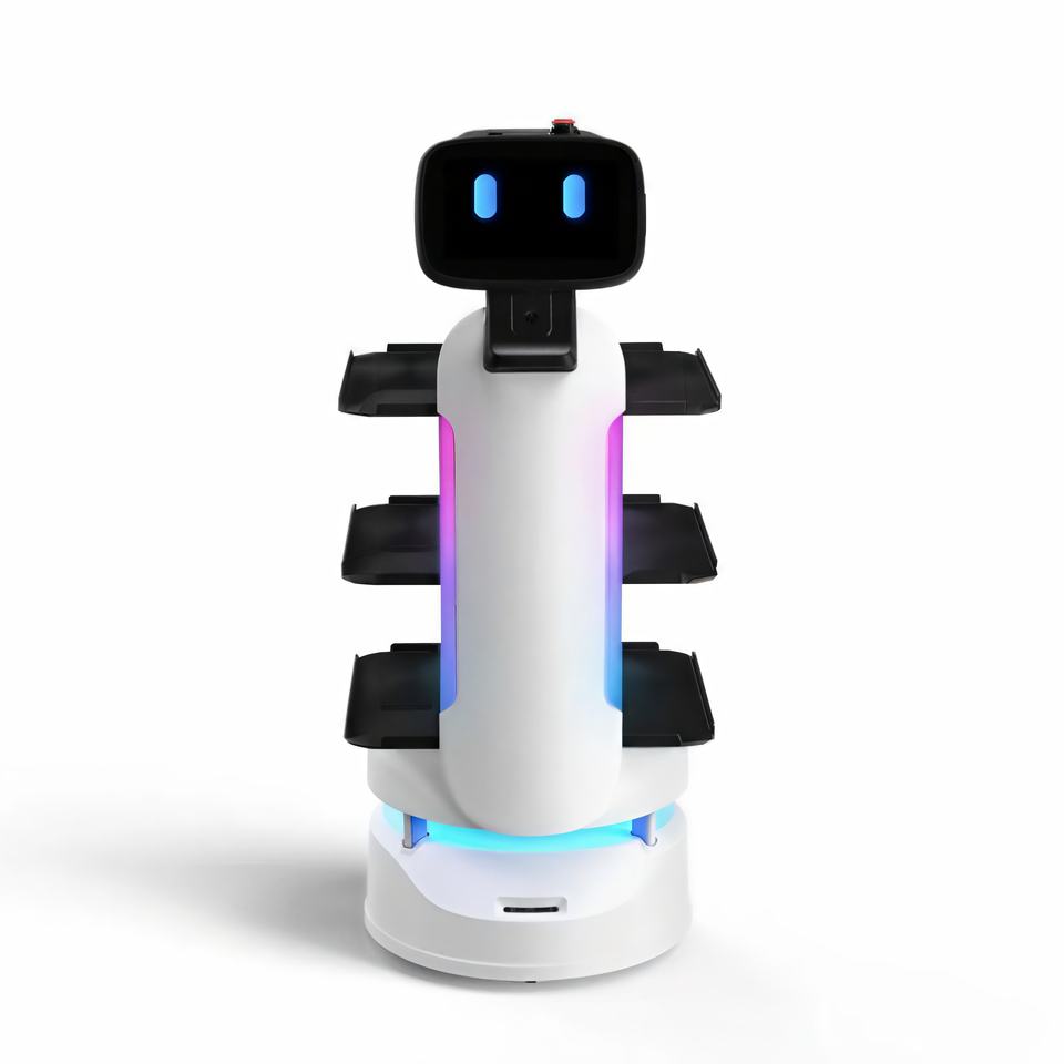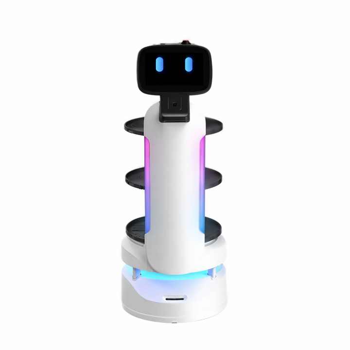 Robot de service alimentaire pour hôtel, batterie au lithium Tesla, 12h d'autonomie, évitement d'obstacles, charge utile de 30 kg, contrôle par application