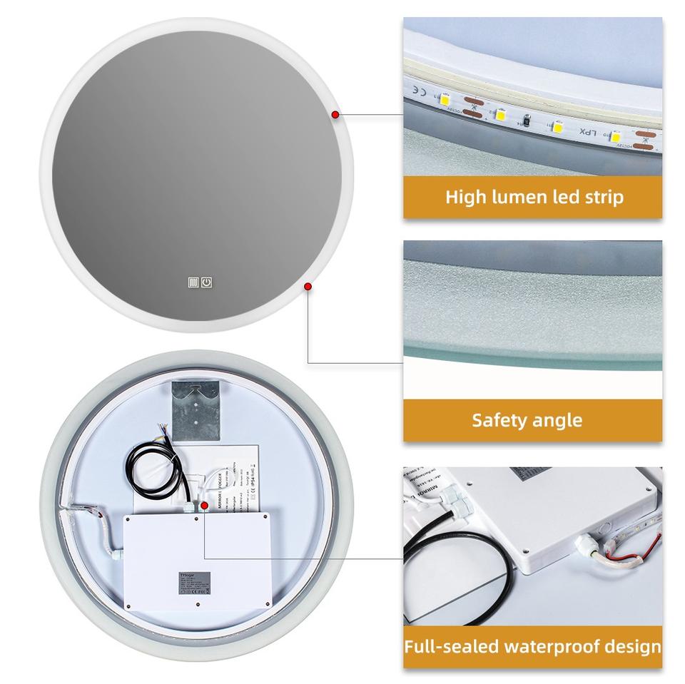 Miroir rond LED pour salle de bain d'hôtel, intérieur, avec interrupteur à bouton-poussoir, étanche IP44