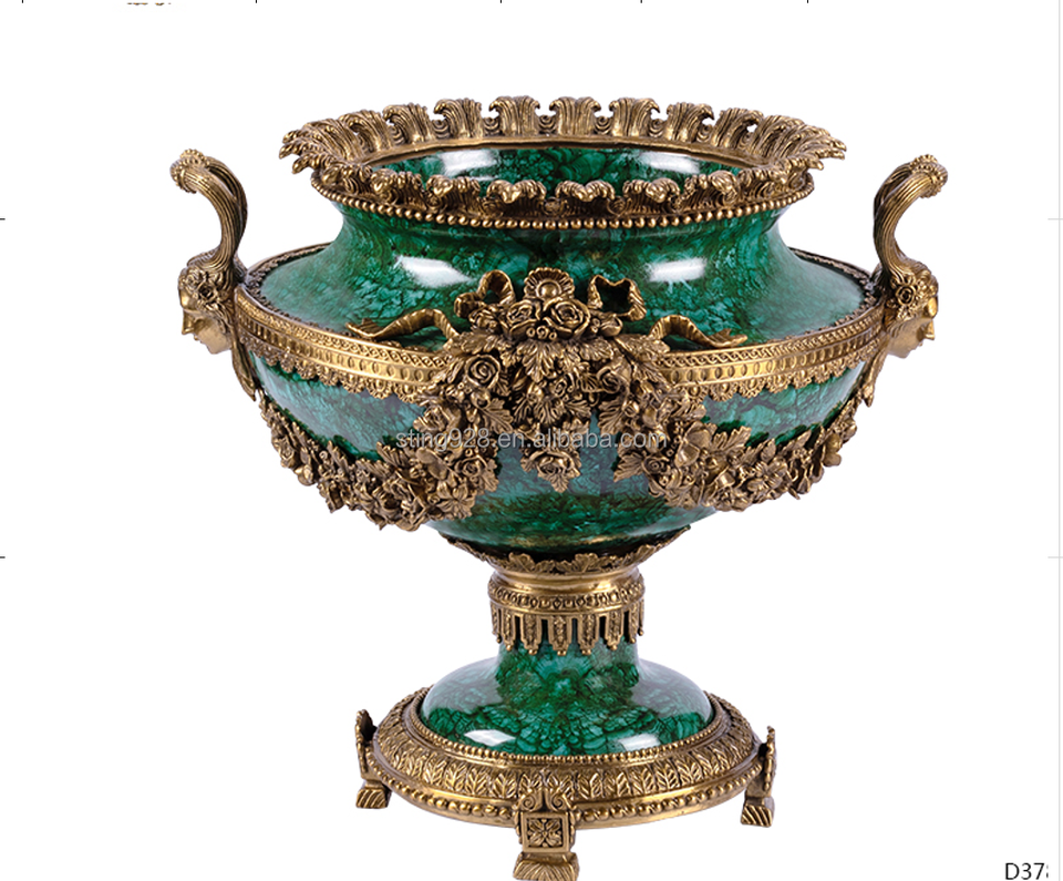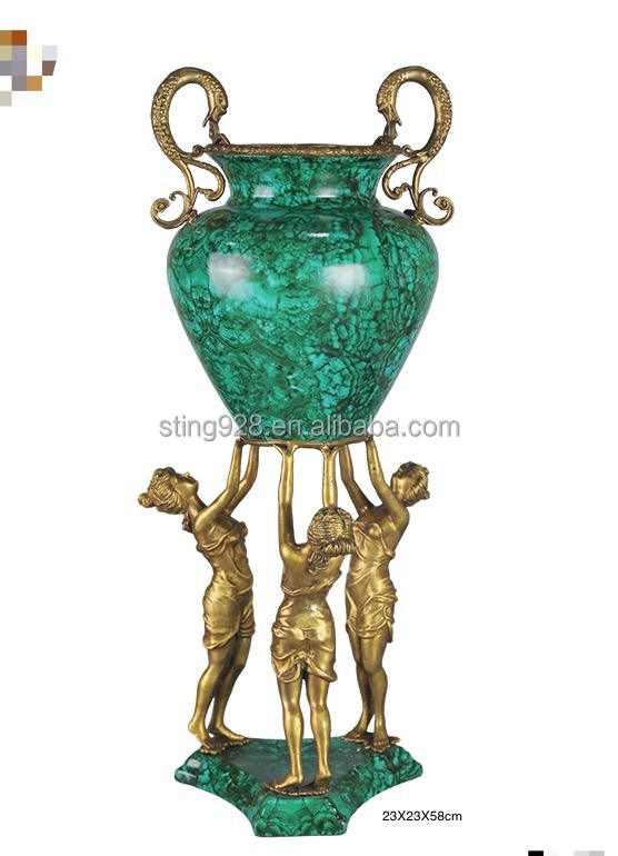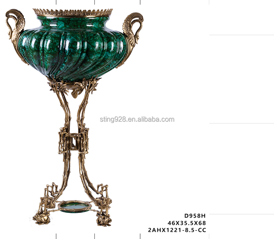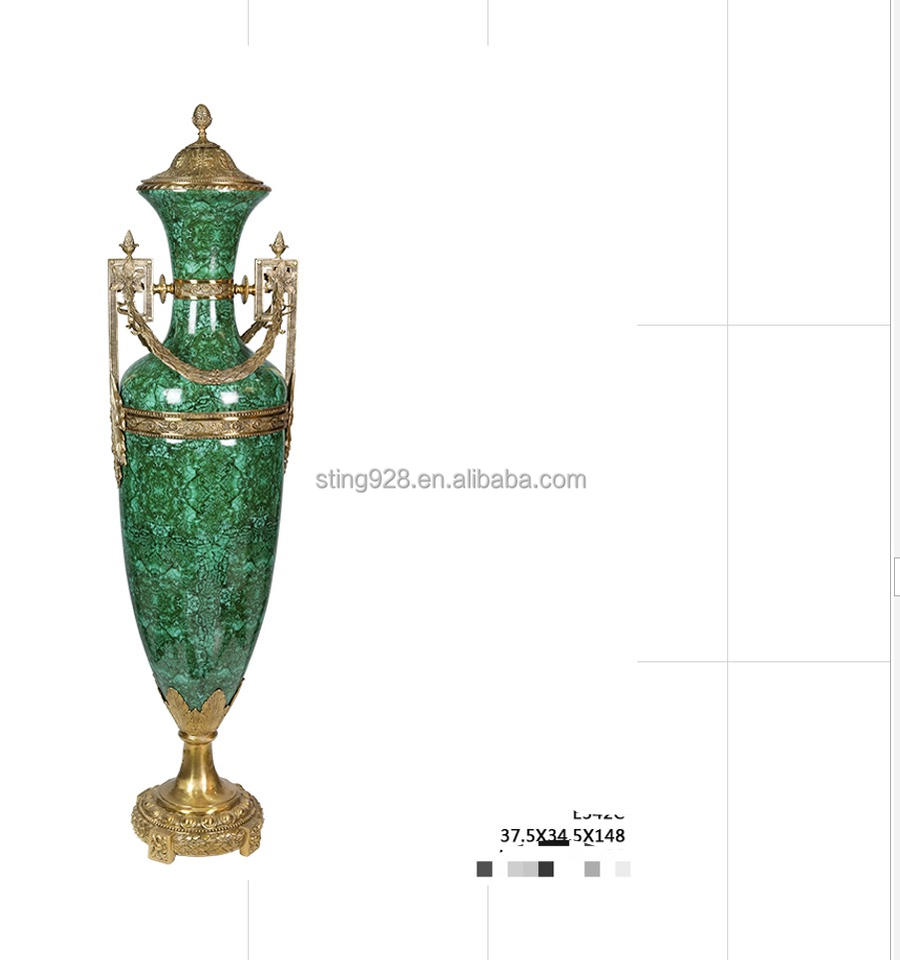 Vase de sol vert en porcelaine 100% artisanale de style traditionnel chinois pour le hall d'hôtel, avec paysage peint à la main pour la décoration du salon