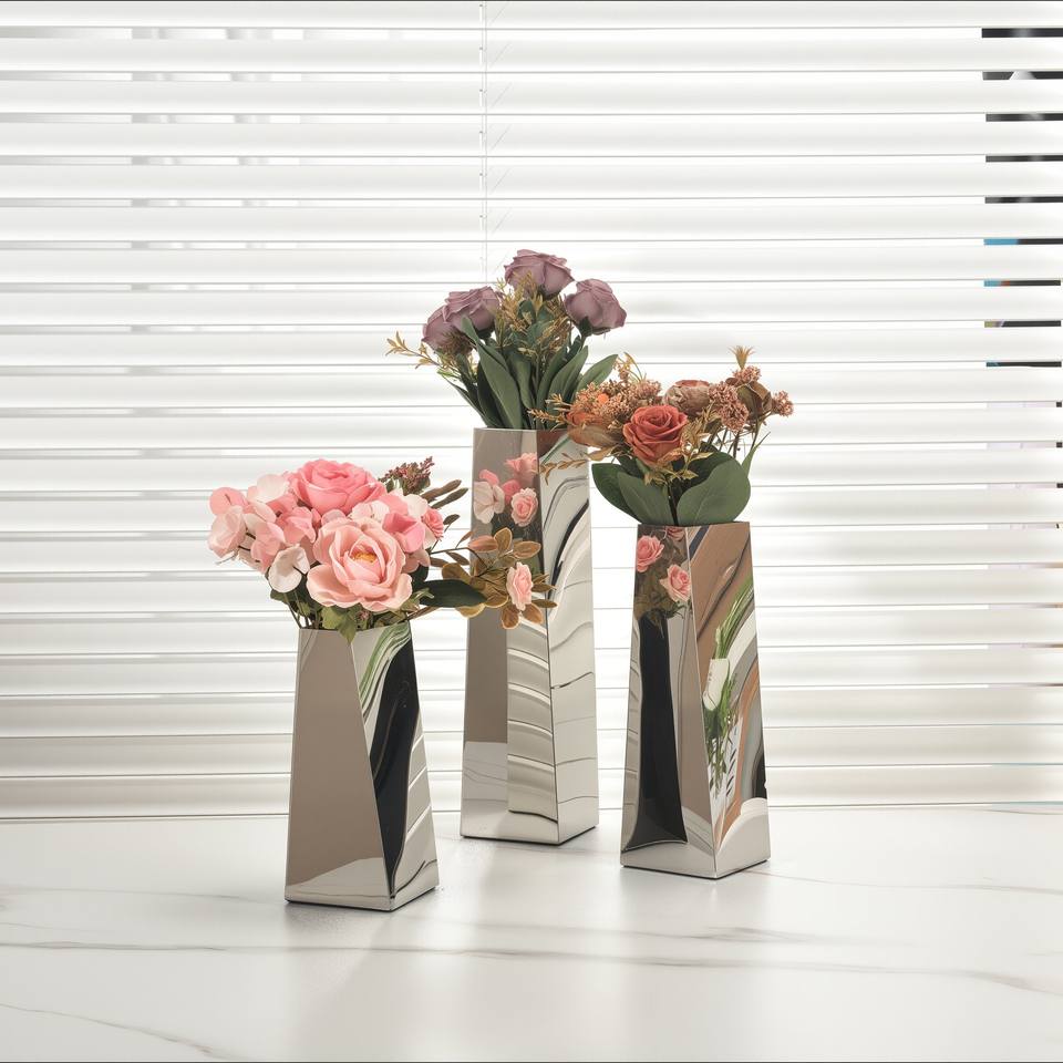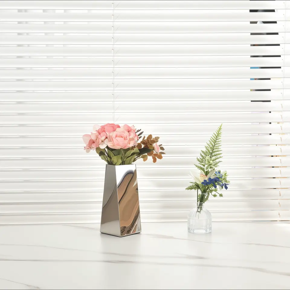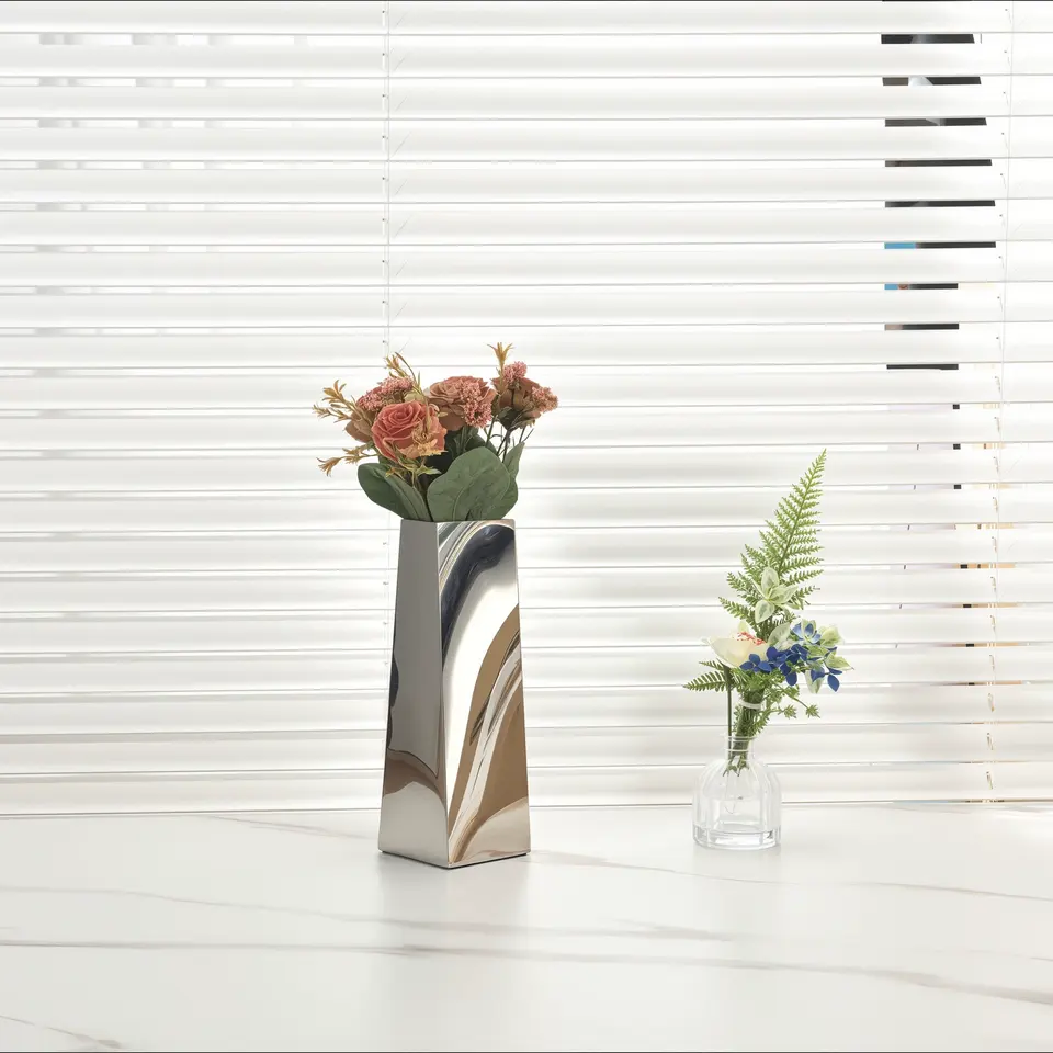 Vase en acier inoxydable pour hôtel et restaurant, petit vase en métal pour fleurs et fleurs fraîches, pour la décoration de mariage et de festival.