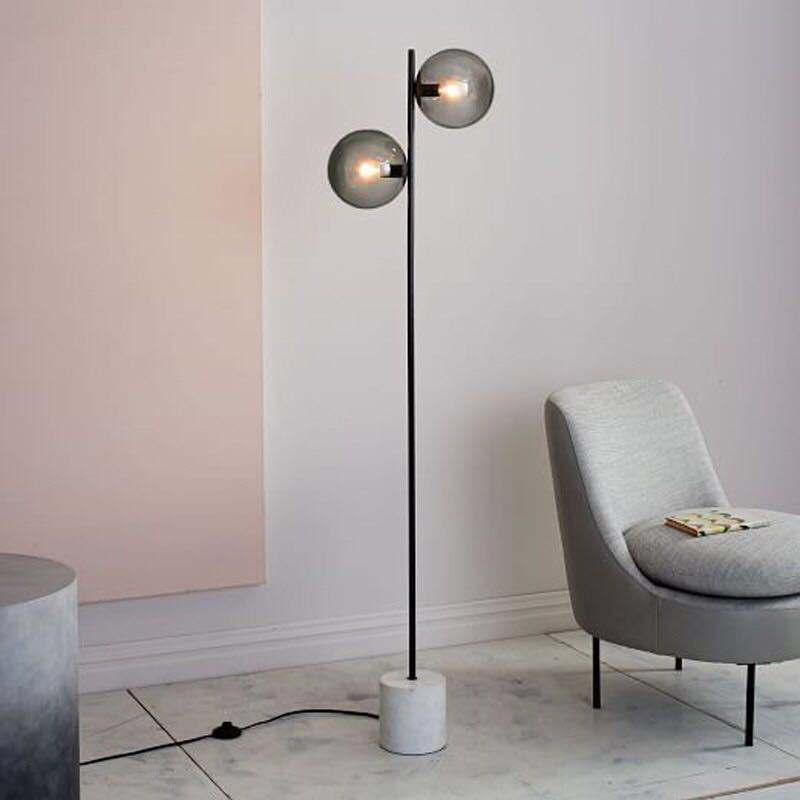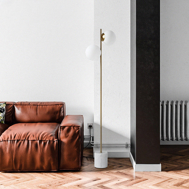 Lampadaire minimaliste à deux boules de verre au design moderne pour chambre d'hôtel avec socle en marbre blanc pour décoration