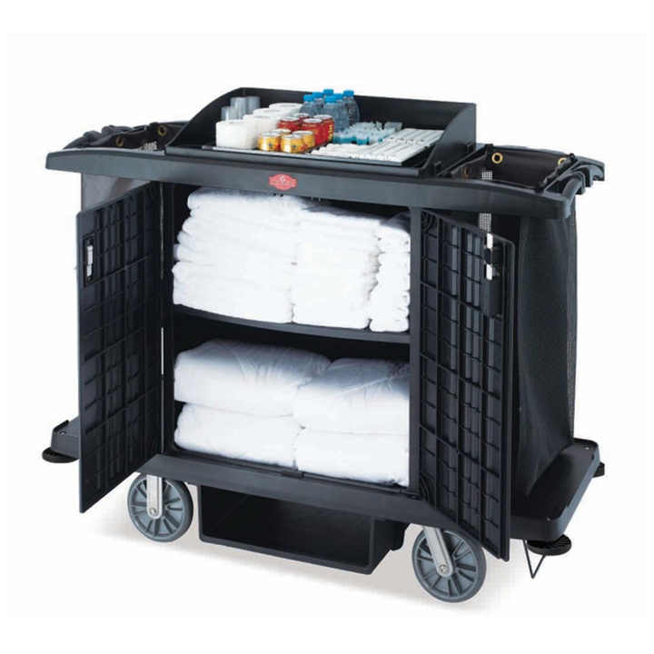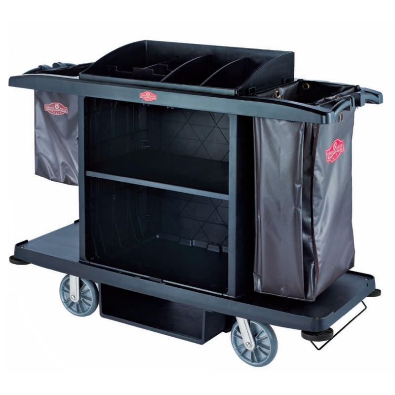 Chariots de nettoyage multifonctionnels en plastique pour chambre d'hôtel, chariots de service de ménage en caoutchouc noir Rubbermaid avec équipement
