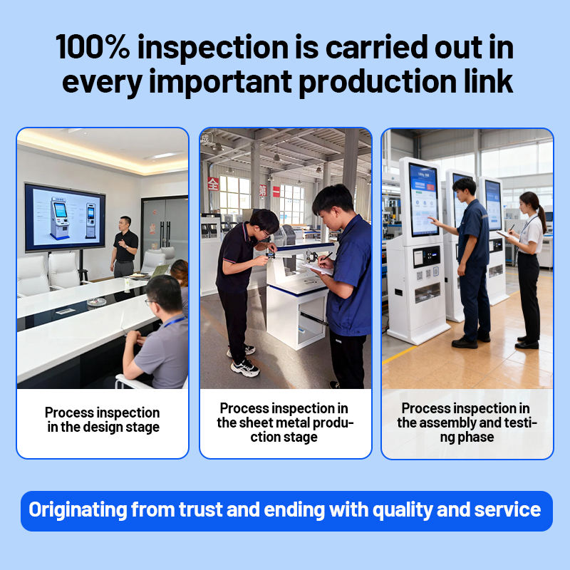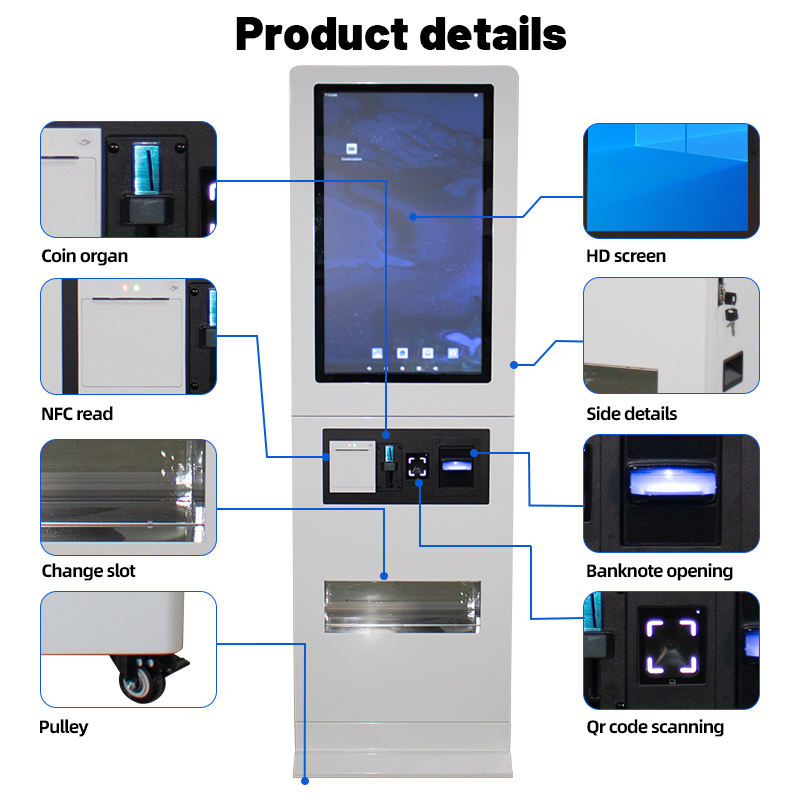 Écran LCD de 27,0 pouces: Un grand écran LCD de 27,0 pouces offre une interface claire et conviviale pour les clients lors des processus d'enregistrement et de départ.