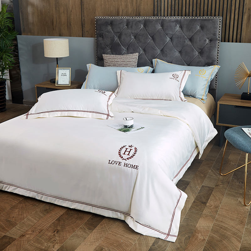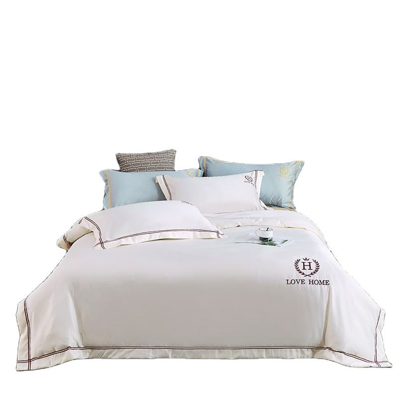 Literie de lit blanc avec Double doublure, ensemble style hôtel au niveau des étoiles, literie brodée