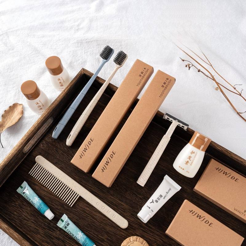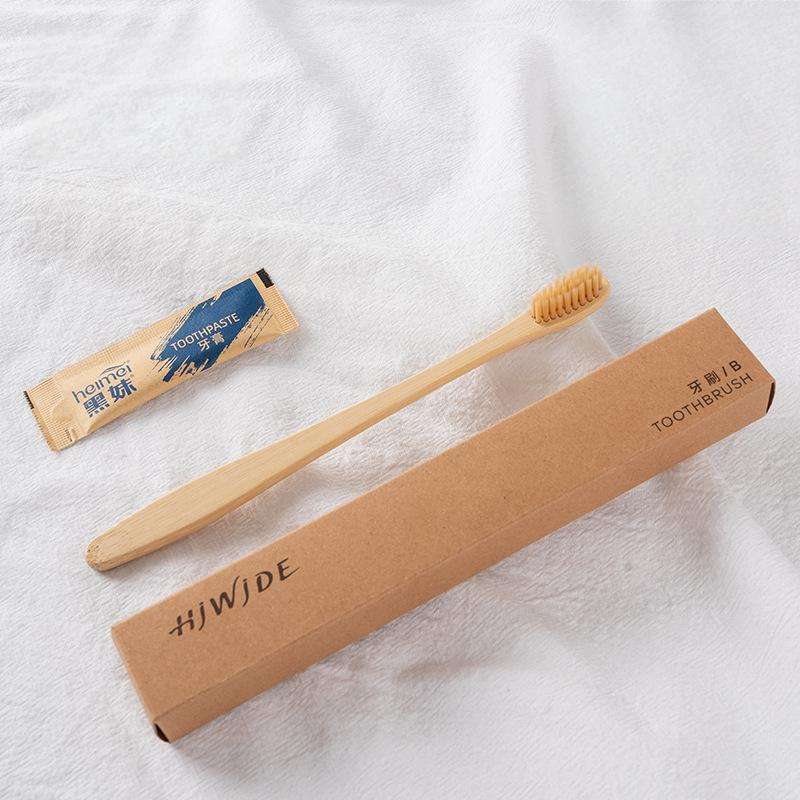 Ensemble de commodités pour hôtels Emballage en papier kraft écologique personnalisé Brosse à dents en bambou Ensemble d'articles de toilette de luxe pour chambres