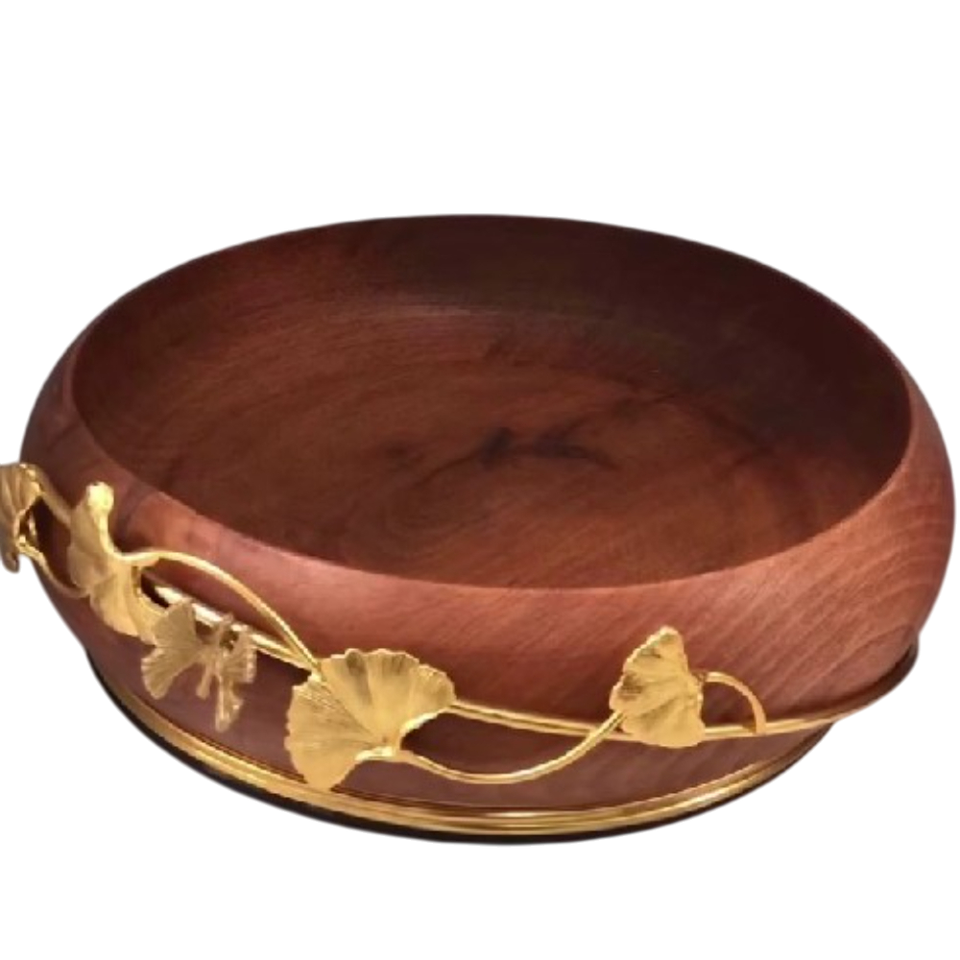Présentoir de service pour hôtels Bol en bois de table fantaisie Design floral en bois d'acacia créatif Accent en métal pour les mariages Poli à la maison