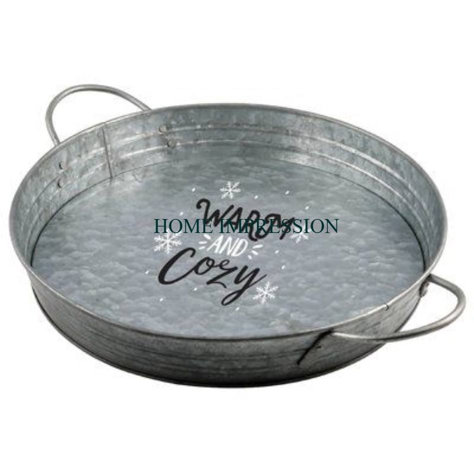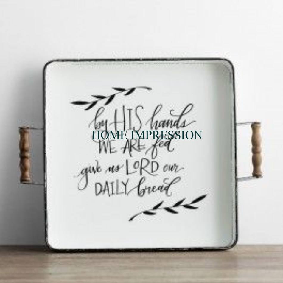 Hotel Ware Square Shape Galvanized Food Safe Tray With Wooden Handle Large Size Home and Hotels Dinnerware Food Serving Tray