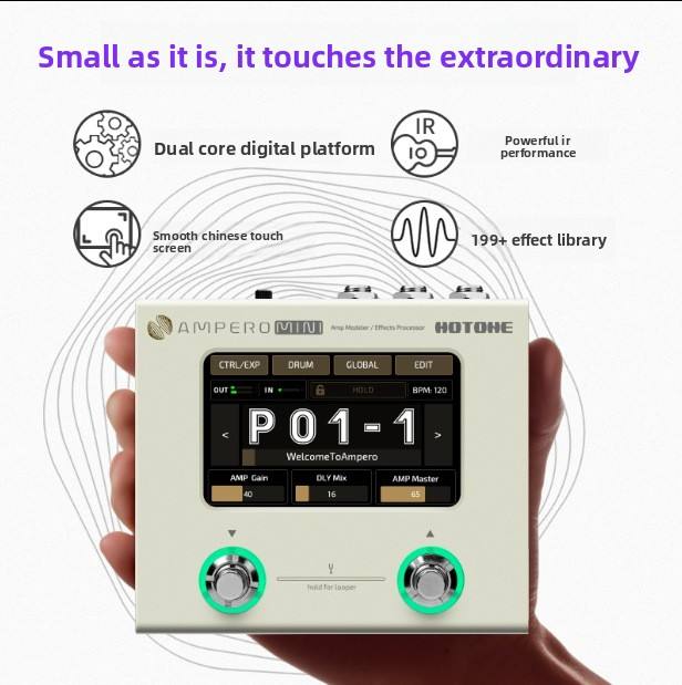 Processeur multi-effets pour guitare électrique Hotone Ampero Mini, pour basse et guitare acoustique, avec carte son numérique et simulateur d'ampli