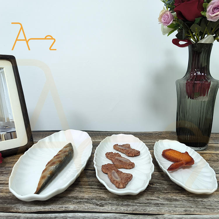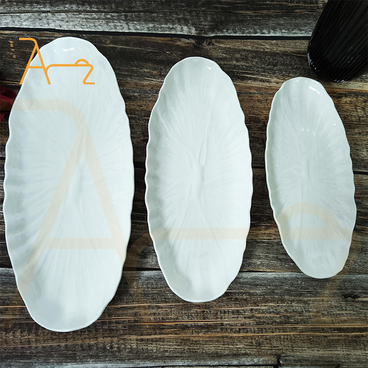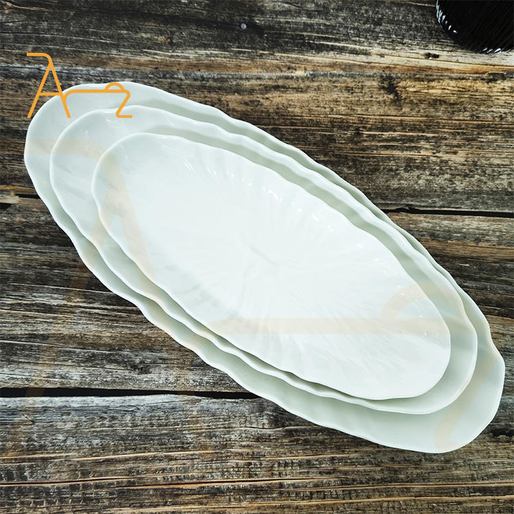Offre spéciale Plateau de service ovale givré gaufré Sushi Poisson Fruits de mer Dessert Salade de fruits Assiette à dîner en céramique Vaisselle de restaurant