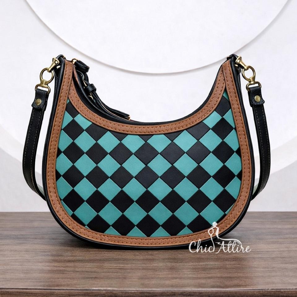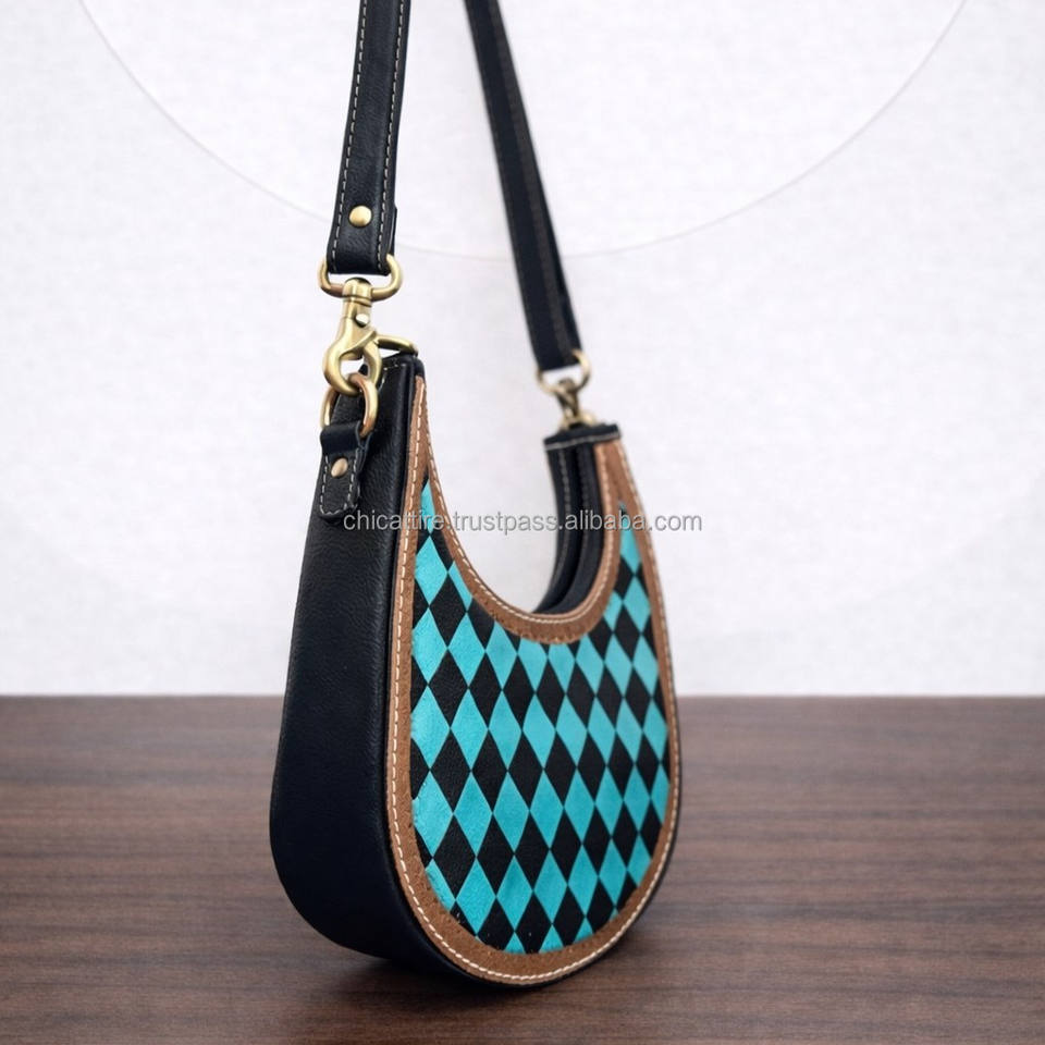 Sac à main en cuir sculpté à la main, sac bandoulière bohème gypsy, couleur turquoise, design à carreaux élégant, vente la plus chaude