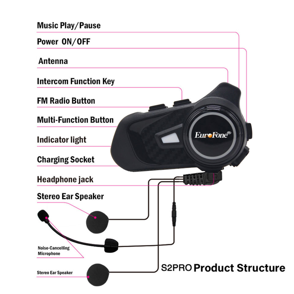 Le plus chaud Vente Moto Bluetooth Casque BT interphone 800m Full Duplex interphone