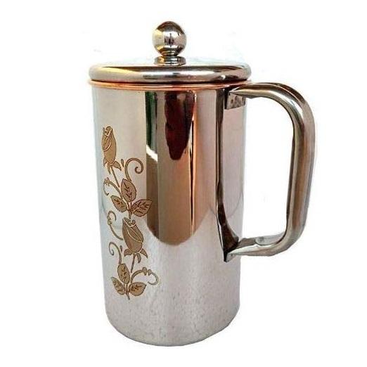 Pichet à eau en cuivre de luxe écologique avec couvercle, pot en verre thermos en métal pour le vin, les voyages, le camping, les mariages et les fêtes