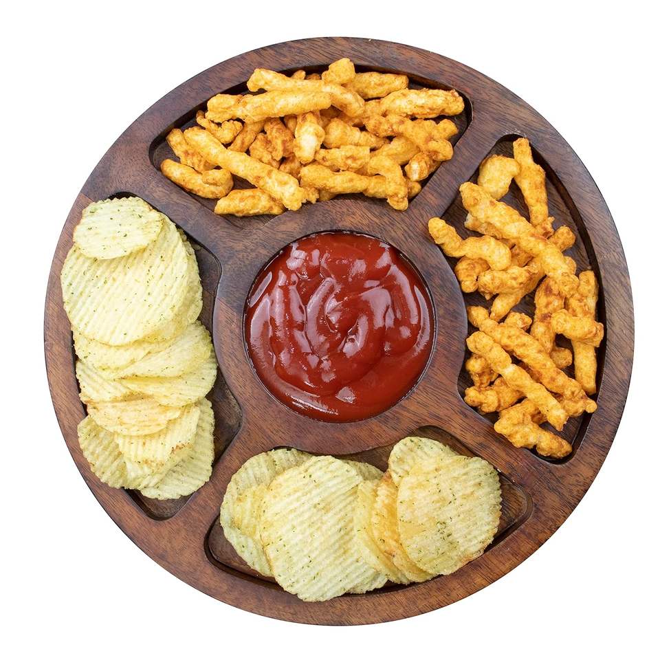 Pièces séparées les plus chaudes assiette ronde en acacia de fruits secs plat plateau de service de fête grilles divisées en bois plateau de fruits