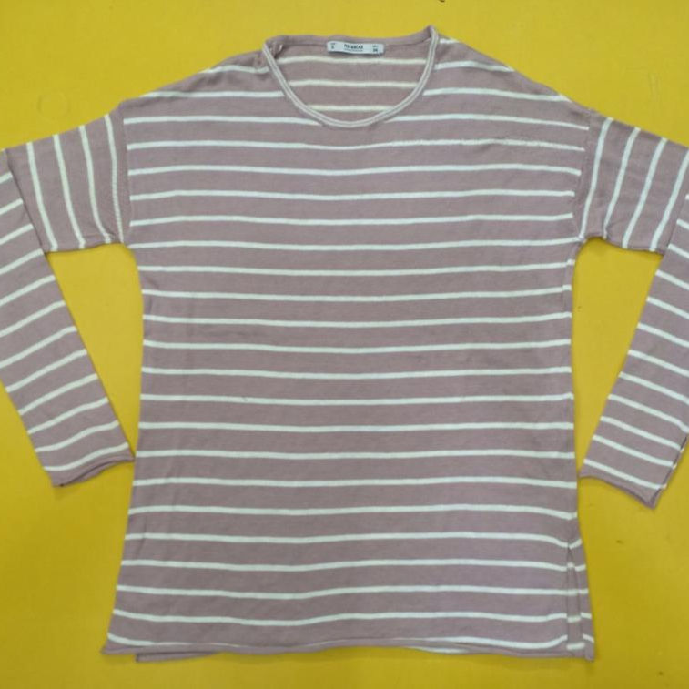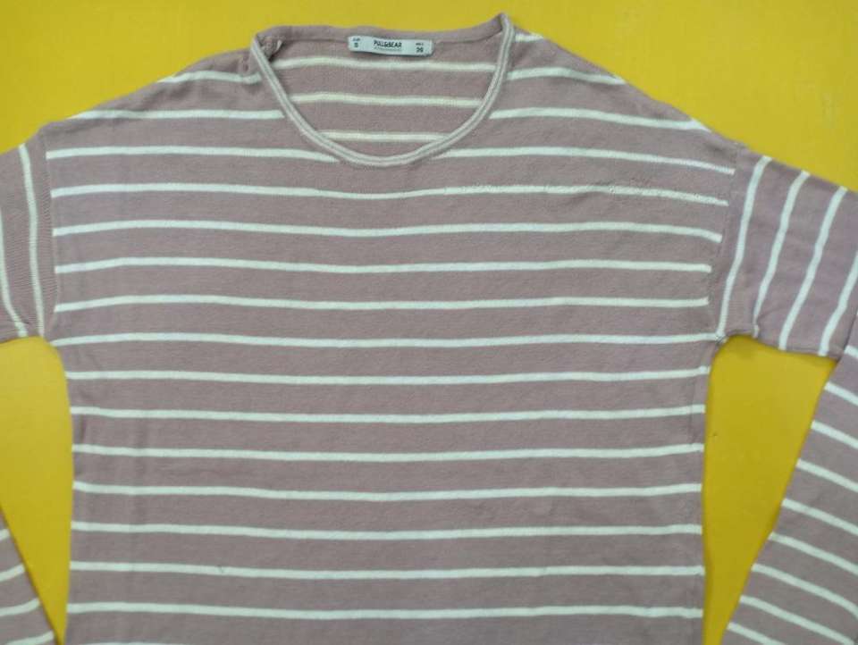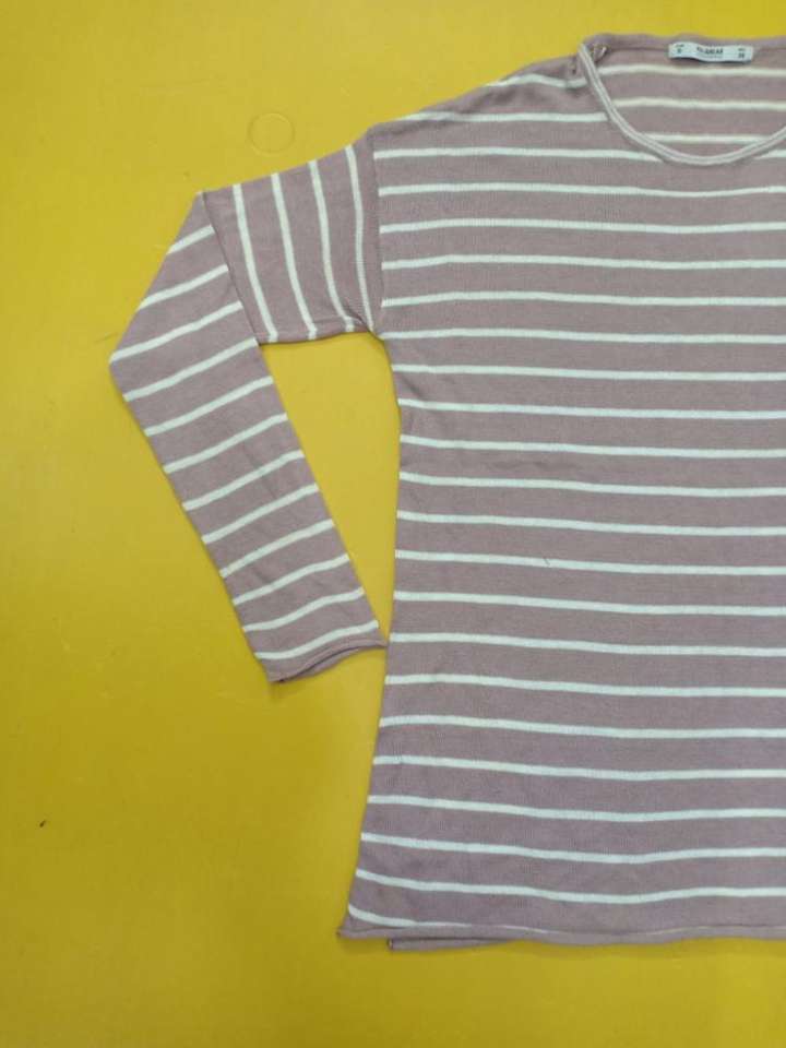 Pull décontracté à rayures roses et blanches pour femme, haut à manches longues et col rond, en coton, à la mode, 2020