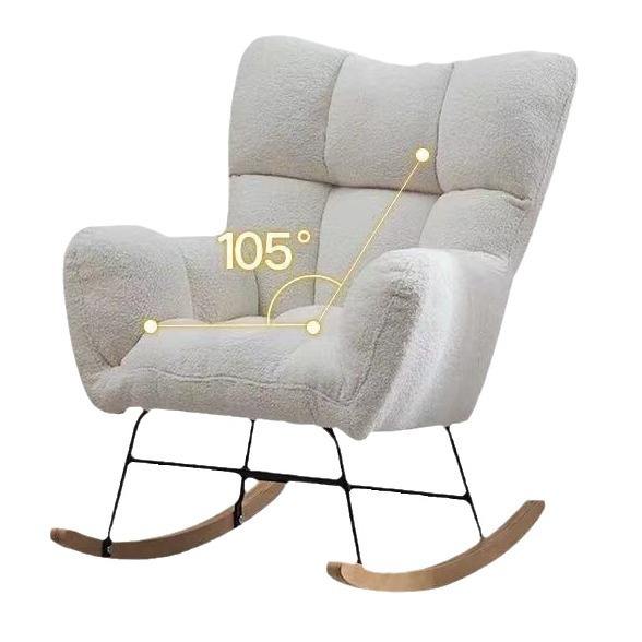 Fauteuil à bascule moderne en tissu orange patchwork pied-de-poule, mousse haute densité, siège spacieux, pieds en métal, confortable et long