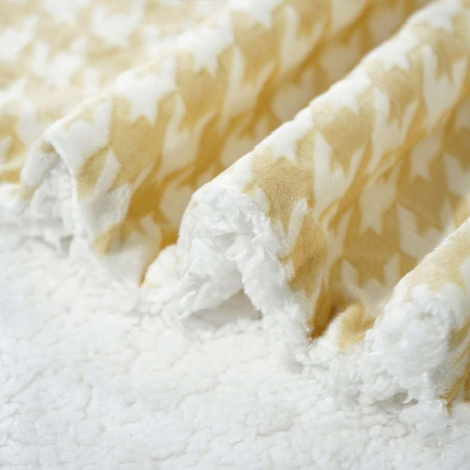 Couverture Sherpa pied-de-poule, couverture ultra douce pour canapé-lit, couverture polaire en peluche confortable pour toutes les saisons, jaune