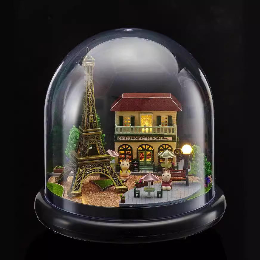 Boîte à musique DIY manuelle à manivelle, thème Tour du Monde, huit notes, en forme de dôme, cadeau créatif de luxe pour anniversaire de petit ami